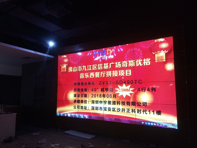 九江區(qū)信基廣場(chǎng)奇斯優(yōu)格音樂西餐廳49寸拼接屏項(xiàng)目