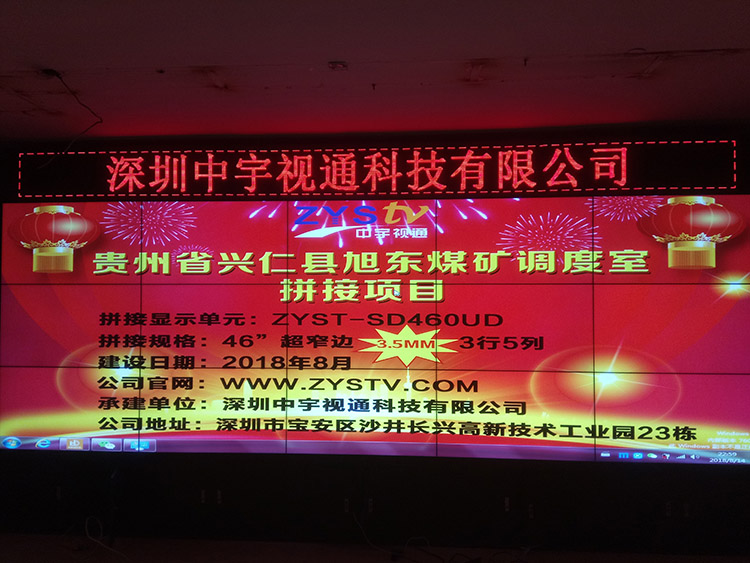 貴州省興仁縣旭東煤礦調度室46寸拼接屏項目采用中宇視通科技大屏液晶拼接方案,項目安裝調試完成并順利驗收。