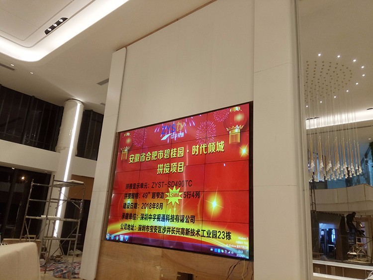 安徽合肥市碧桂園時代傾城49寸3.5mm拼縫5行4列拼接屏項目采用中宇視通科技的解決方案,項目安裝完成并且順利完成驗收。