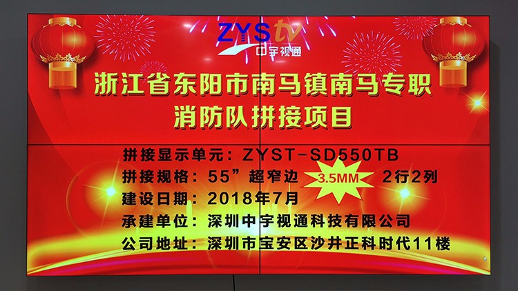浙江省東陽市南馬鎮(zhèn)南馬專職消防隊(duì)55寸3.5mm拼接屏項(xiàng)目安裝驗(yàn)收完成。