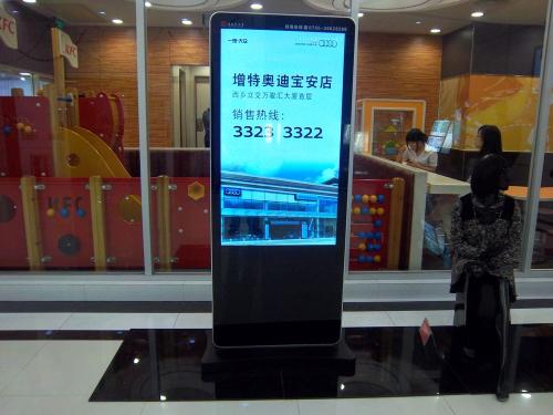 1.落地式廣告機(jī)靈活性較高,怎么理解,就是說,只要地面空間場地不受限制,就可以隨意挪動(dòng)擺放;